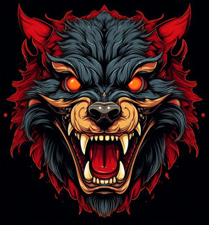 #Werwolf #Cartoon #Augen #Zähne #Vektor #Louis Rhead Stil #Chuah Thean Teng #Wildstyle #mythische Wesen #Rot