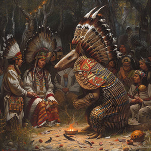 Ein Gürteltier nimmt an eine traditionelle Native American Zeremonie teil.