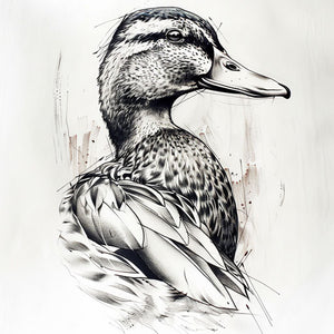 Entenporträt-Tattoo mit detaillierter Schattierung auf weißem Hintergrund