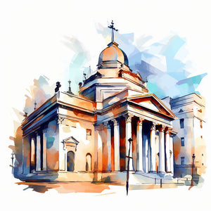 Bank-Clipart im Stil eines Ölgemäldes, auf weißem Hintergrund