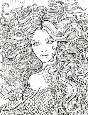Erwachsene Malvorlage mit einer Meerjungfrau in ornamentaler Abstraktion