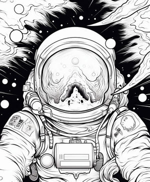 Illustration einer Astronauten-Ausmalseite im faszinierenden Stil