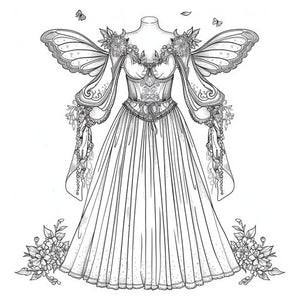 #Feenkostüm #Feenflügel #Blumendetails #Malbuchseite