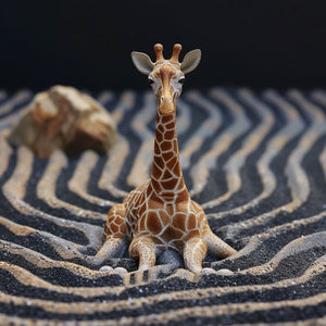 Friedlicher Zen-Garten mit aufmerksamem Giraffenmönch