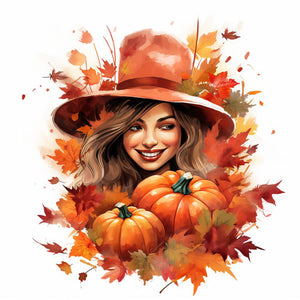 #glücklich Herbst #Clipart #Ölgemälde-Stil #weißer Hintergrund