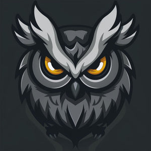 Stilvolles Maskottchen-Logo mit einer eleganten Eule auf dunklem grauem Hintergrund