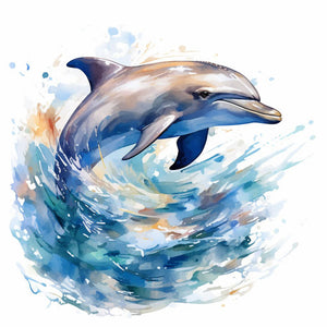 Delfin Clipart im Stil eines Ölgemäldes, auf weißem Hintergrund