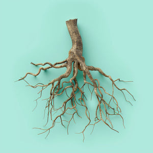 Realistische Wurzeln Clipart auf flachem, ruhigem Aqua-Hintergrund