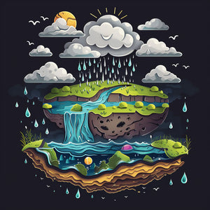 Wasserzyklus-Clipart in einem realistischen Stil auf einem flachen, dunklen Kohlehintergrund gerendert