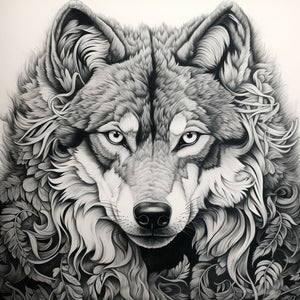 Página para colorear realista de lobo en blanco y negro