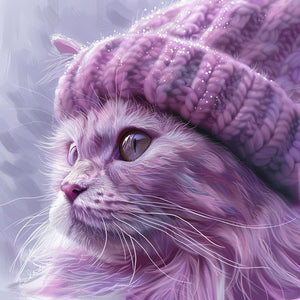 #gatoRosa #gorroTejidoBlanco #fondoPantalla4k #púrpuraClaro #marrónClaro #keithCarter #óptico #jodyBergsma