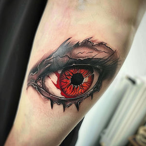 #tatuaje #ojo #diablo #realista #rojo #negro #detalles #impacto #artístico #intrincado