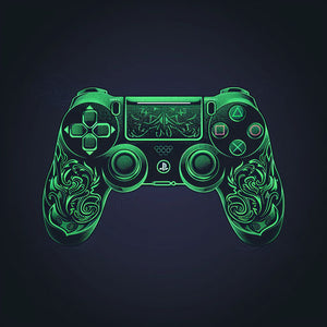 Logo clásico de gamers con detalles intrincados sobre fondo verde oscuro