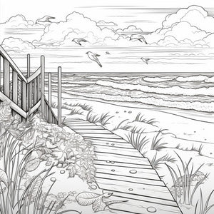 Hoja de colorear de playa imprimible y cautivadora al estilo precisionista