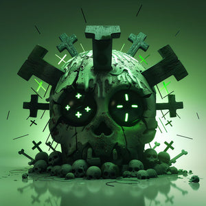 #calaveraconcruces #energíaanimada #ojosbrillantes #atribucióncreativacomún #grisclaro #verde #havencore #ue5 #violenciacartoon