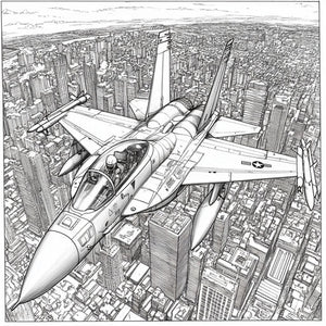 #avióncaza #jet #urbano #realista #intrincado #libropara colorear #paisajeurbano #detallado #arte #página