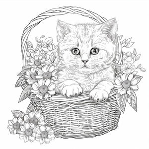 #lindo #gatito #cesta #flores #páginaparacolorear
