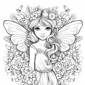 #hada #niña #alas #flores #páginas para colorear #cautivador
