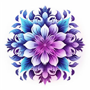 #diseñofloralcoloreado #estilomagentayazul #influenciadelbudismo #degradadodecolor #detallesornamentados #lilaclaroyblanco #áreasplanasdecolor