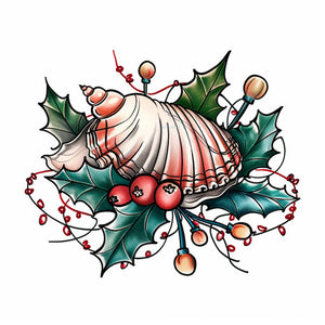 #tatuaje #navidad #acebo #estilo #rojo #verde #blanco #festivo #clipart #concha