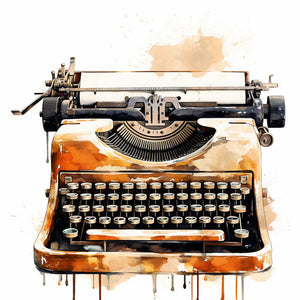 Clipart de máquina de escribir en el estilo de la pintura al óleo, sobre fondo blanco