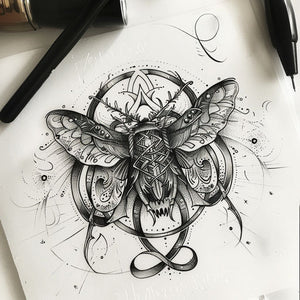 Diseño de tatuaje de una polilla de la muerte con nudos celtas
