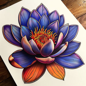 #tatuaje #lirioacuático #diseñodearte #coloresvibrantes #contornosatrevidos