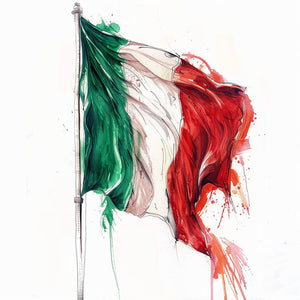 Representación artística de la bandera italiana como diseño de tatuaje sobre fondo blanco