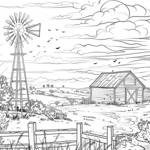 #coucherdesoleil #grange #moulin à vent #page de coloriage