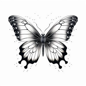 Papillon noir et blanc sur fond blanc, style dessins minimalistes noir et blanc, motifs tatouage classiques
