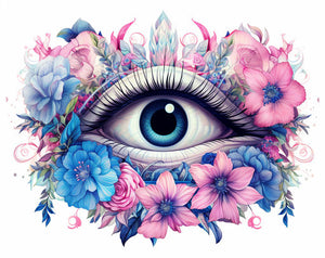 #œil omniscient #symbole bleu et bleu #symbole omniscient #symbole omniscient horologio y horologi #dans le style de motifs floraux complexes #magenta clair et bleu #réalisme exotique #dessins colorés #celestialpunk #vue aérienne