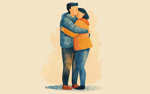 Étreinte en style texte et emoji, marron clair et bleu foncé