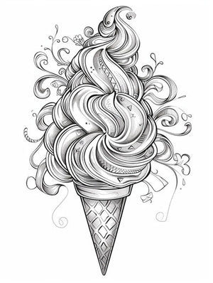 #pageàcolorierbonneanniversaire #cône de crème glacée #stylebroderie #tourbillons #colorationsubtile #découpageetcollage #icônique #transcendant #sherryakrami #3sur4