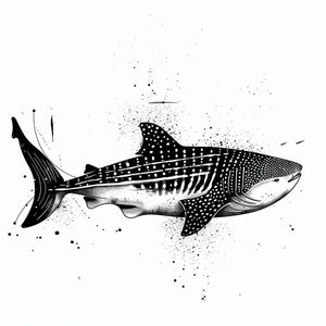 Esquisse de tatouage plat contemporain d'un requin-baleine aux rayures minimalistes en noir et blanc