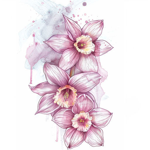 #tatouage #fleurs #bouquet #art #printemps #mars #jonquille #rose #aquarelle #croquis