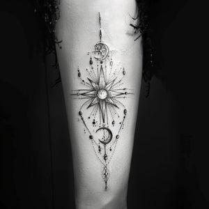 #tatouage #étoiledunord #lune #phasesdelalune #argenté #croquis #mystique
