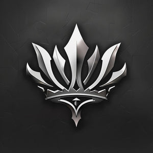 Logo de couronne en blanc et argent sur fond sombre