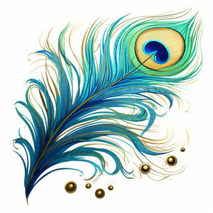 Páva toll clipart olajfestmény stílusban, fehér háttérrel