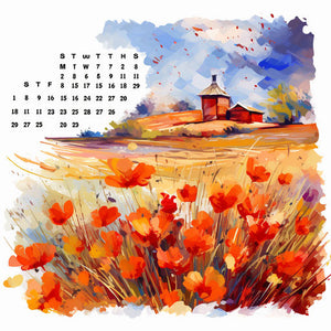 Naptár illusztráció olajfestés stílusban, fehér háttérrel