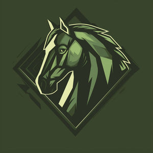 Professzionális lólogó geometriai formákkal zöld háttérrel