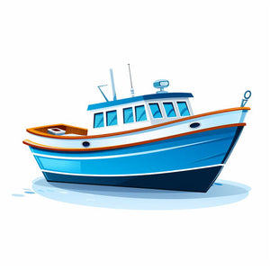Hajó ábrázolása minimalista stílusban, fehér háttéren