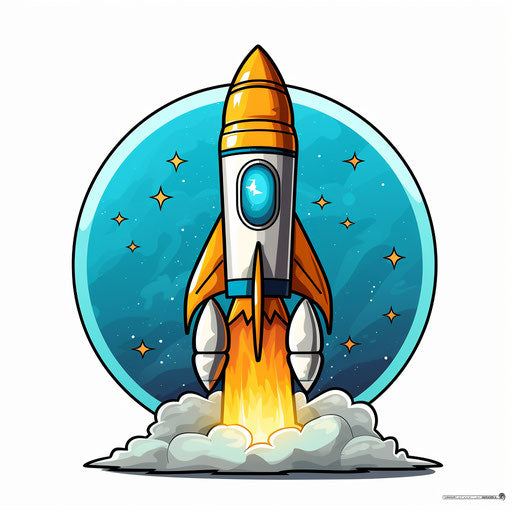 Rakéta illusztráció a Chiaroscuro Art stílusában, fehér háttérrel