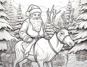 Karácsonyi színező lapok a Mikulással a rénszarvason, kemény és puha vonalak stilusa