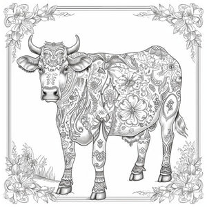#DíszesTehén #BonyolultVirágosMinták #SzínezőkönyvOldal #GennadySpirin #RészletgazdagDíszítések