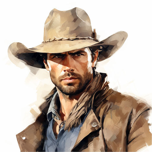 Kovboj klipművészet olajfestménystílusban, fehér háttérrel