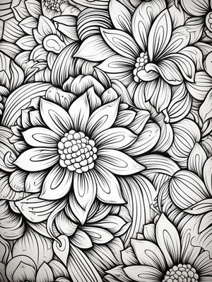 Kézzel rajzolt virágok virágszirom színezőkönyv