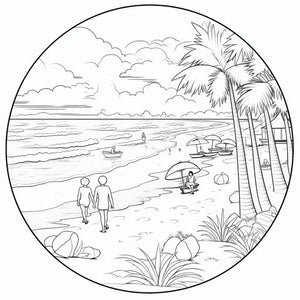 Színes strand gyerekeknek, játékos és színes stílusban, tondo, precizionista, fekete-fehér, hőhullám, kodak ektar 100, festői