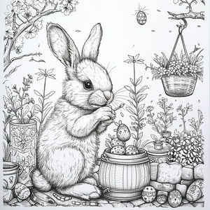 #húsvéti nyúl #festés #kert #kifestőoldal #kifestőkönyv #húsvét #tojás #jelenet #vicces #nyúl