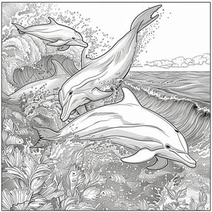 Játékos delfinek az óceánban, Mike Zeck Színezőkönyv stílusban