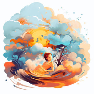 Álom illusztráció olajfestés stílusában, fehér háttérrel
